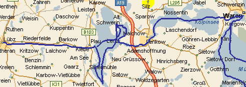 den Fleesensee und nach passieren des Göhrener Kanals geht es scharf über Bb.