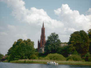 Schweriner See. 10:30 Uhr legen wir ab. Wir fahren noch eine Runde durch den